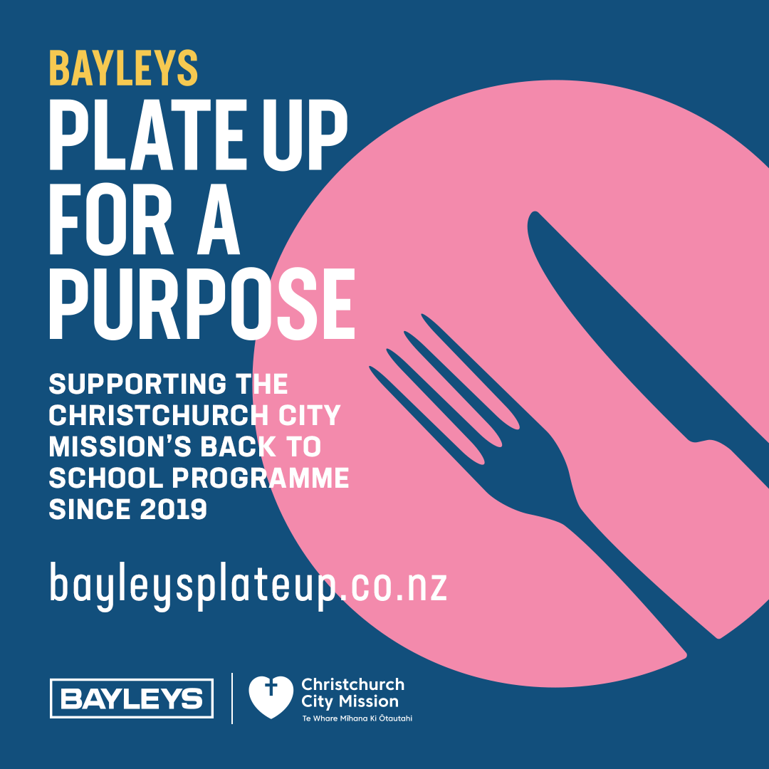 Throughout September, the restaurants will offer a special Bayleys Plate Up For A Purpose dish on their menus and a donation from these dishes will go towards the Christchurch City Mission’s Back to School family support programme.